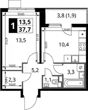 6 713 910 ₽1-к.квартира, 36.9 м², 9 эт.