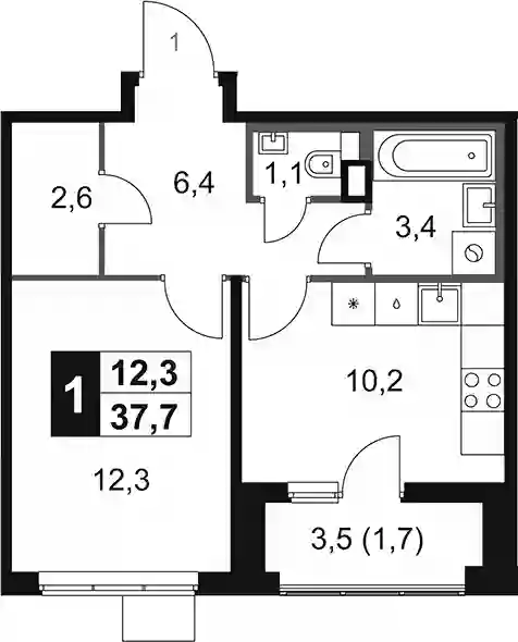 6 544 630 ₽1-к.квартира, 37.2 м², 2 эт.