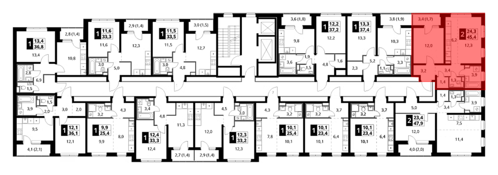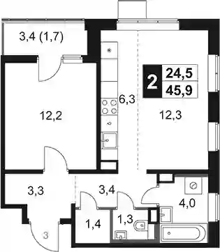 10 212 400 ₽2-к.квартира, 46.4 м², 9 эт.