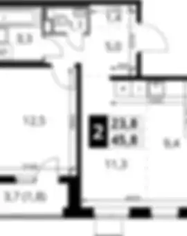 2-к.квартира, 44 м², 12 эт. в ЖК 1-й Химкинский Корпус 1.4