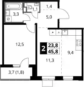 9 984 000 ₽2-к.квартира, 46 м², 2 эт.