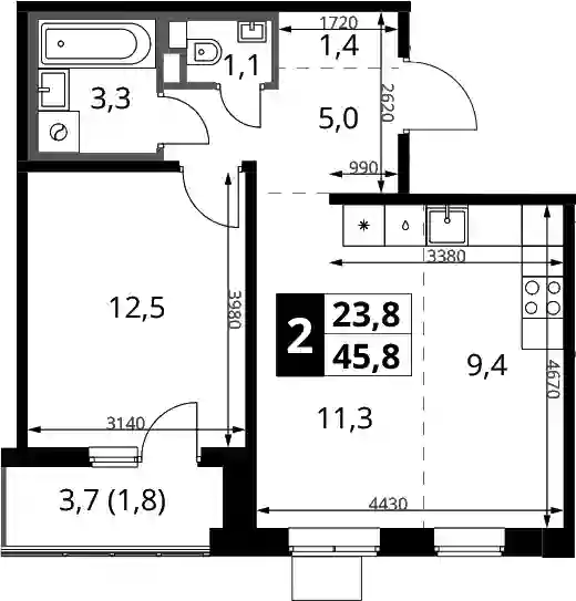 9 984 000 ₽2-к.квартира, 46 м², 2 эт.