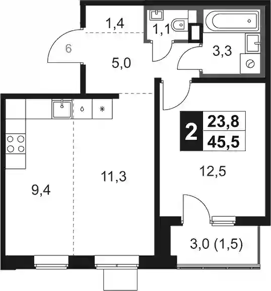 2-к.квартира, 44 м², 9 эт. в ЖК 1-й Химкинский Корпус 1.4