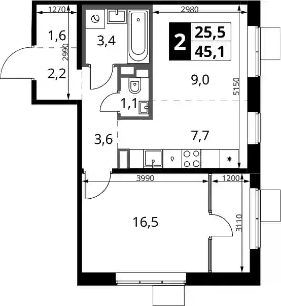 9 984 000 ₽2-к.квартира, 46 м², 2 эт.
