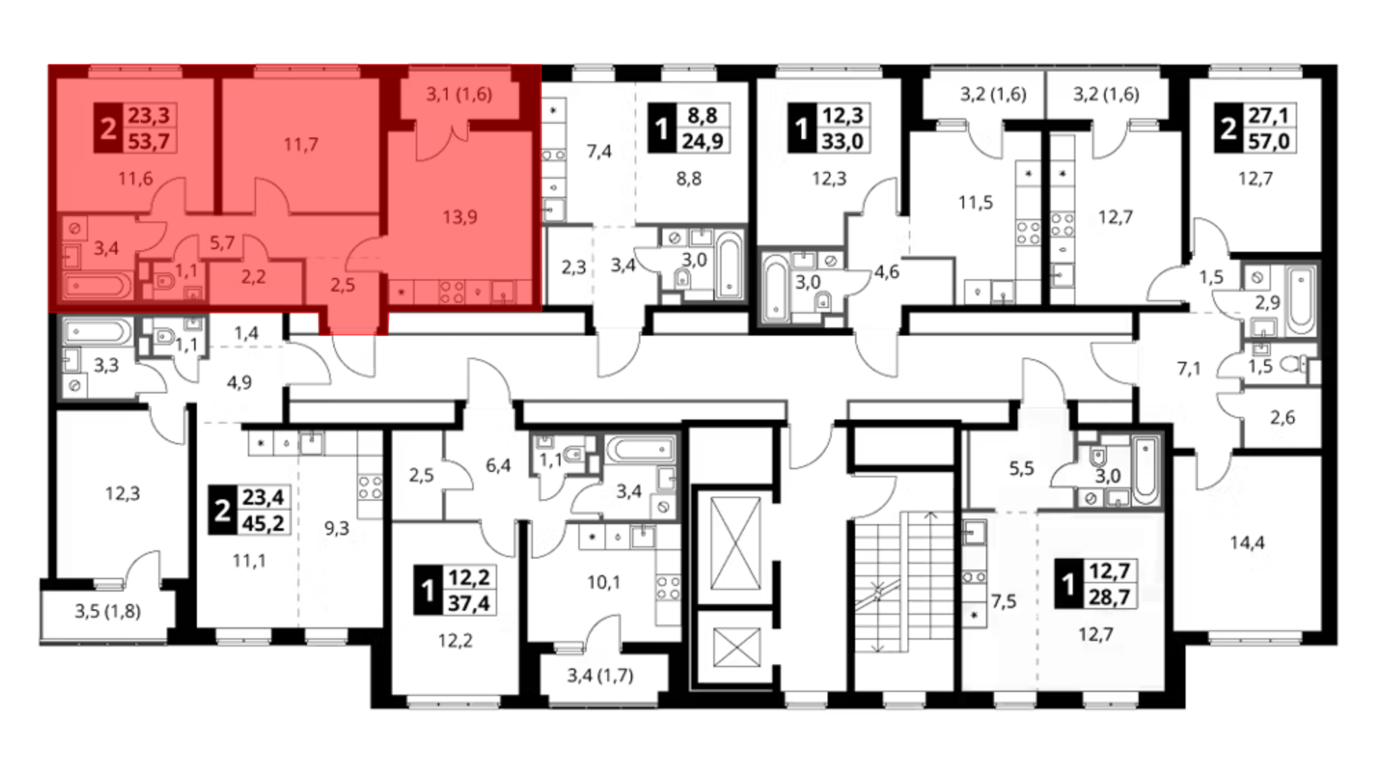12 658 500 ₽2-к.квартира, 55.6 м², 8 эт.