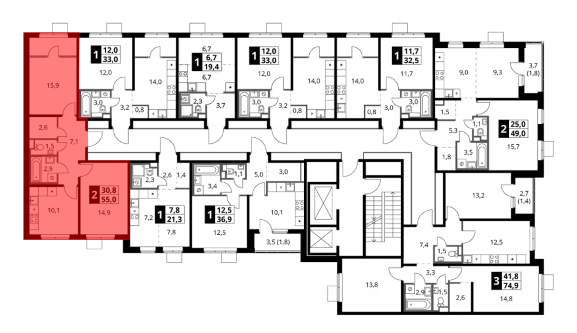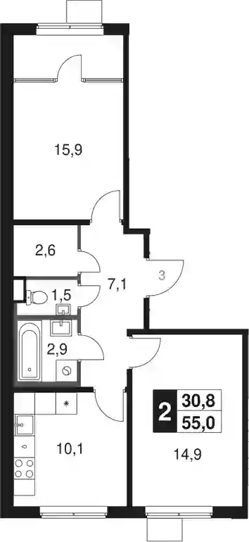 12 658 500 ₽2-к.квартира, 55.6 м², 8 эт.