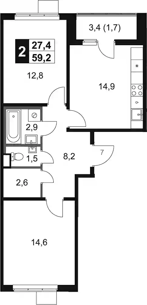 2-к.квартира, 57.5 м², 8 эт. в ЖК 1-й Химкинский Корпус 1.4