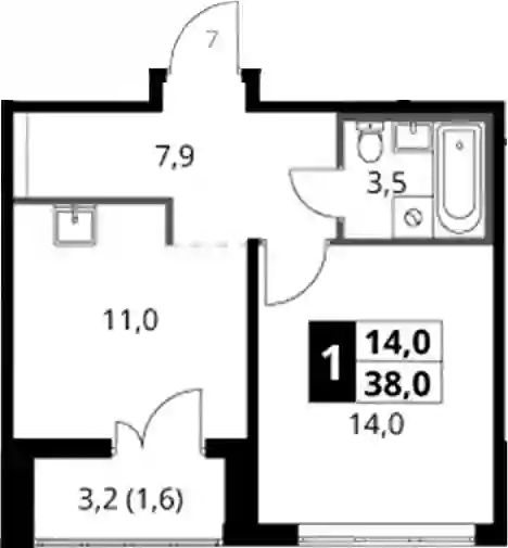 14 803 571 ₽1-к.квартира, 36 м², 6 эт.