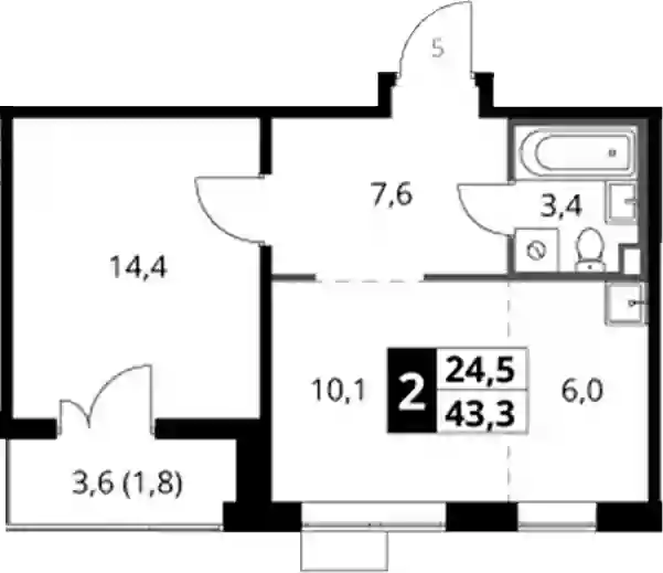 13 489 434 ₽2-к.квартира, 43.5 м², 9 эт.