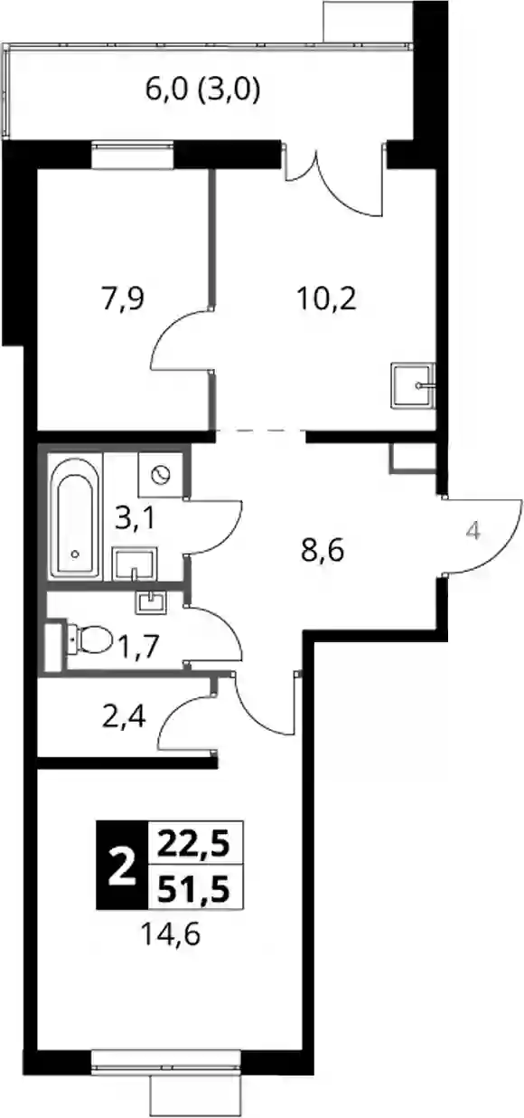 15 156 901 ₽2-к.квартира, 46.2 м², 22 эт.
