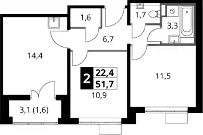 2-к.квартира, 50.1 м², 22 эт. в ЖК 1-й Саларьевский Корпус 1