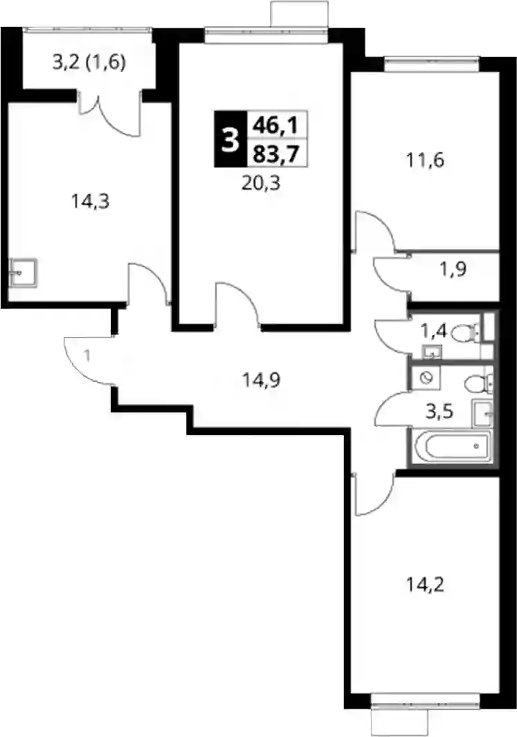 20 322 250 ₽3-к.квартира, 82 м², 3 эт.