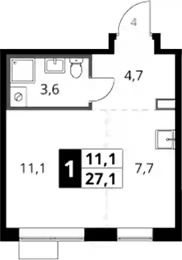Студия, 27.1 м², 10 эт. в ЖК 1-й Саларьевский Корпус 1