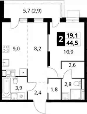 12 909 884 ₽2-к.квартира, 43.9 м², 16 эт.