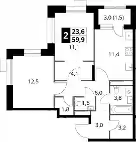 58.4 м2