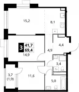 17 641 569 ₽3-к.квартира, 65.4 м², 15 эт.