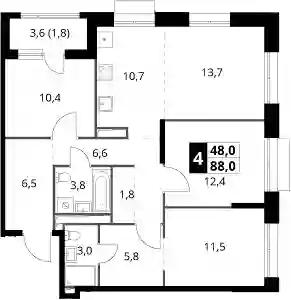 4-к.квартира, 86.2 м², 6 эт. в ЖК 1-й Саларьевский Корпус 6.2