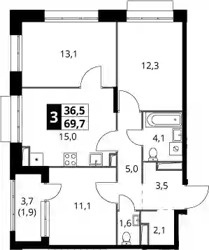 17 533 824 ₽3-к.квартира, 68.8 м², 13 эт.