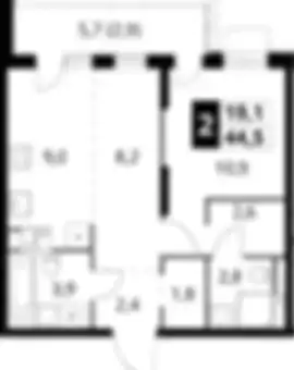 12 909 884 ₽2-к.квартира, 43.9 м², 16 эт.