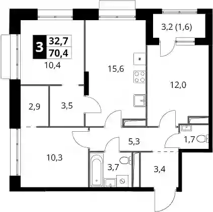 3-к.квартира, 68.8 м², 18 эт. в ЖК 1-й Саларьевский Корпус 6.4