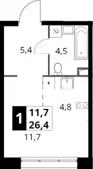 11 684 232 ₽Студия, 26.6 м², 25 эт.