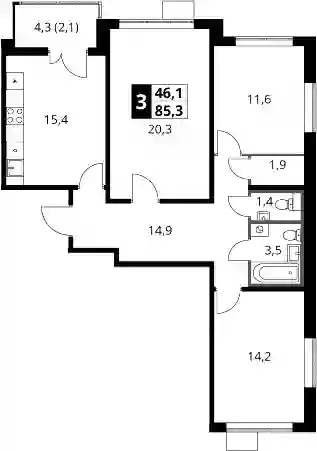 24 695 845 ₽3-к.квартира, 74.6 м², 15 эт.