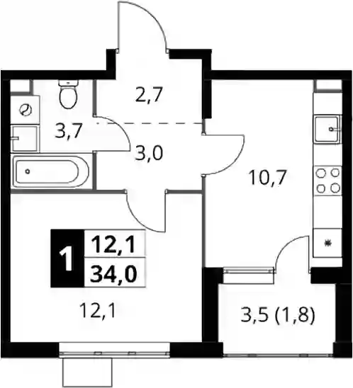1-к.квартира, 32.2 м², 12 эт. в ЖК 1-й Шереметьевский Корпус 3