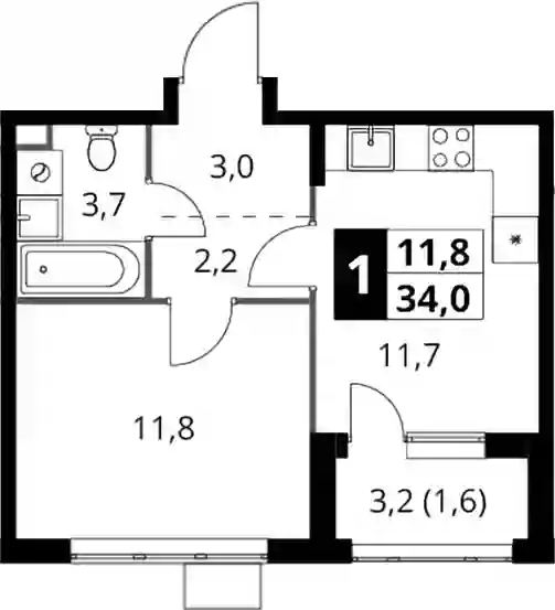 11 441 800 ₽1-к.квартира, 36.9 м², 7 эт.