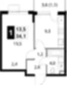 10 967 040 ₽1-к.квартира, 33.8 м², 13 эт.