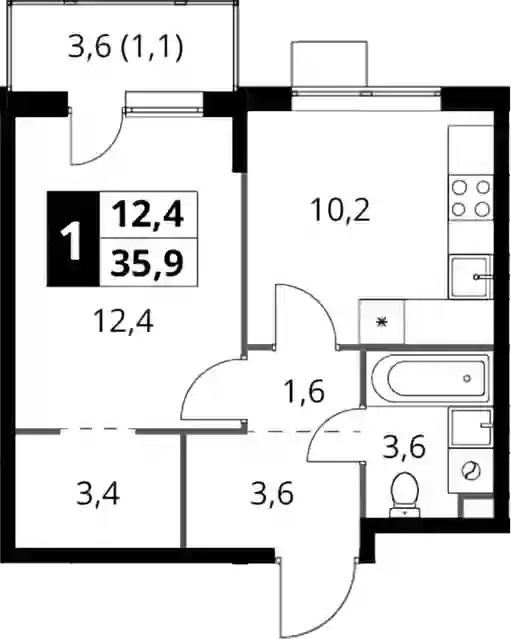 9 435 020 ₽1-к.квартира, 35.84 м², 7 эт.