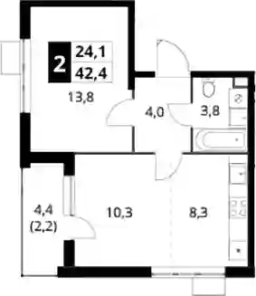 13 916 302 ₽2-к.квартира, 43.68 м², 2 эт.
