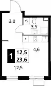 Студия, 23.6 м², 6 эт. в ЖК 1-й Шереметьевский Корпус 3