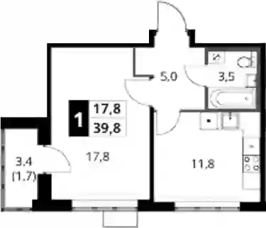 14 851 540 ₽1-к.квартира, 39.09 м², 1 эт.