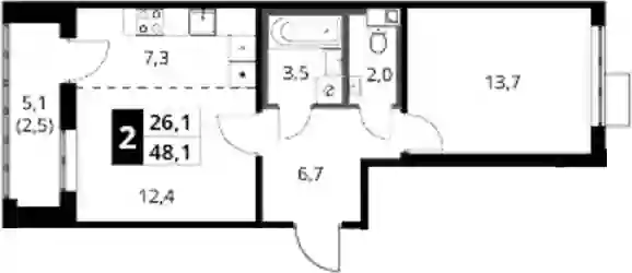 11 270 709 ₽2-к.квартира, 46.8 м², 13 эт.