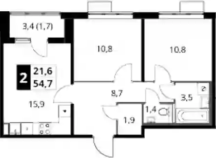 17 990 880 ₽2-к.квартира, 57.6 м², 7 эт.