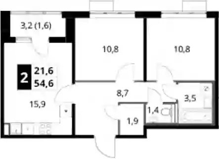 17 921 420 ₽2-к.квартира, 56.6 м², 15 эт.