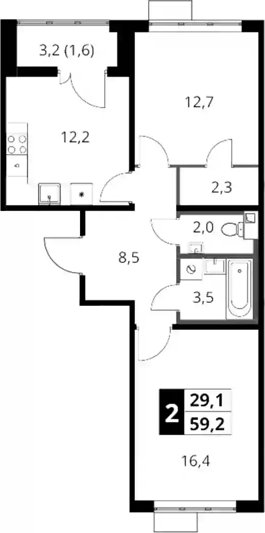 12 735 920 ₽2-к.квартира, 57.6 м², 16 эт.