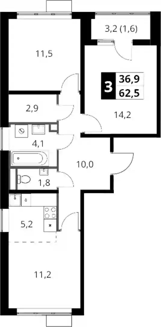 13 319 578 ₽3-к.квартира, 61.3 м², 3 эт.