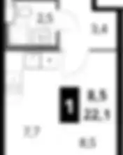 8 260 980 ₽Студия, 22.1 м², 16 эт.