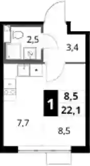 7 877 501 ₽Студия, 22.1 м², 13 эт.