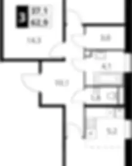19 209 660 ₽3-к.квартира, 61.3 м², 10 эт.