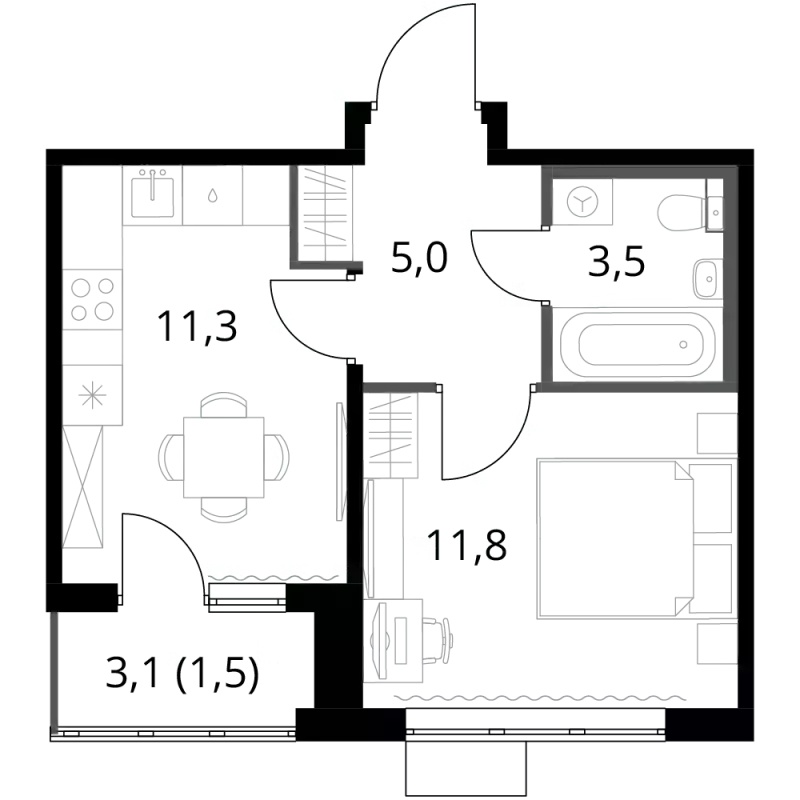 12 270 170 ₽1-к.квартира, 31.6 м², 15 эт.