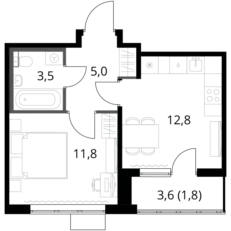 12 793 501 ₽2-к.квартира, 35.85 м², 3 эт.