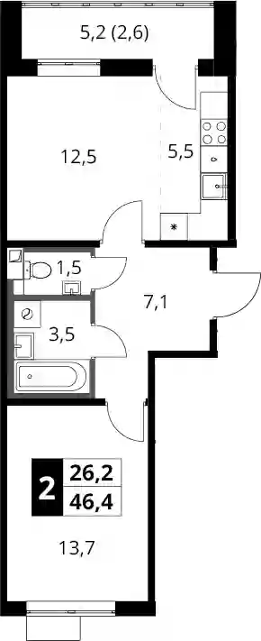 15 379 650 ₽2-к.квартира, 46.4 м², 13 эт.