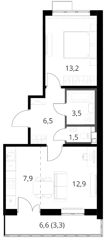 13 785 840 ₽2-к.квартира, 47.4 м², 13 эт.