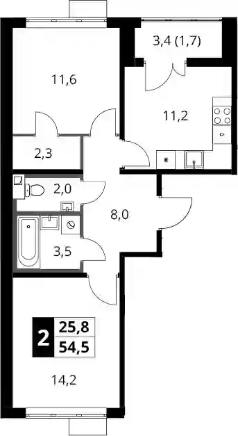 2-к.квартира, 52.8 м², 9 эт. в ЖК 1-й Шереметьевский Корпус 4