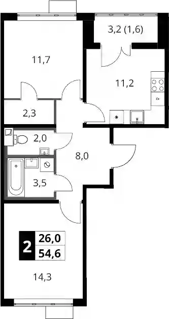 2-к.квартира, 53 м², 9 эт. в ЖК 1-й Шереметьевский Корпус 4