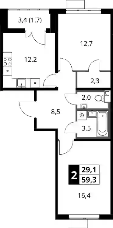 12 441 664 ₽2-к.квартира, 55.4 м², 16 эт.