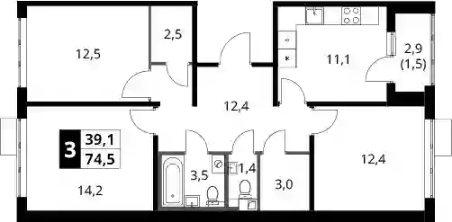 15 172 062 ₽3-к.квартира, 73.5 м², 12 эт.
