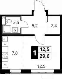 12 270 170 ₽1-к.квартира, 31.6 м², 15 эт.